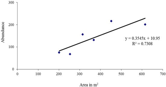 The relationships between the abundance of the fruit-feeding butterflies and the area of the gaps in Silent Valley National Park, Western Ghats, India.