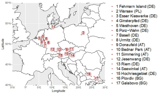For details of the methods, see the studies at Urmitz [24], Donaufeld [25], Hochriesgebiet [26,27], Fehmarn [28], Jesenwang [29] and Riem [30]. Investigations in Bednar Park, Seewinkel and Simmering followed the same protocol as Sistani et al. [25], protocols for Bulgarian studies (Plovdiv and Galabovo) were described in Zhelev et al. [31], the Warsaw dataset followed Mazgajska and Mazgajski [32]. For surveys in the Cologne area (sites 3 to 7, Figure 1), length was measured with sliding calipers (precision: 2.54/325.12 cm ± 0.05 mm) and mass was measured with a lab scale (precision 200/0.01 g). Individuals were photographed to determine recaptures.