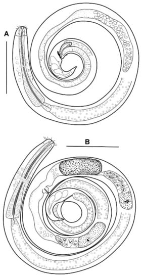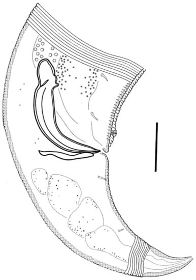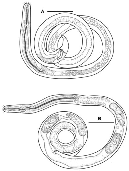 - Eberth, C.J. Untersuchungen über Nematoden; Verlag von Wilhelm Engelmann: Leipzig, Germany, 1863; pp. 1–77. [Google Scholar]