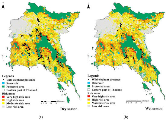 3.2. The Risk of Human–Elephant Conflicts in the Eastern Part of Thailand