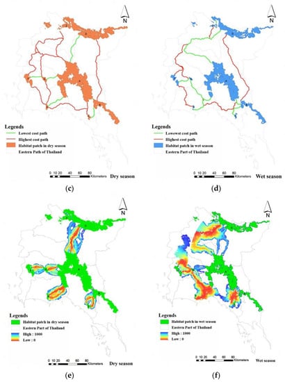 - Suksavate, W.; Duengkae, P.; Chaiyes, A. Quantifying landscape connectivity for wild Asian elephant populations among fragmented habitats in Thailand. Global Ecol. Conserv. 2019, 19, e00685. [Google Scholar] [CrossRef]