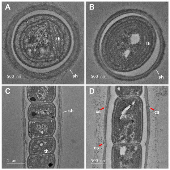 | Species | Filaments | Sheath | Trichomes | Apical Cell | Necridia | Hormogonia |