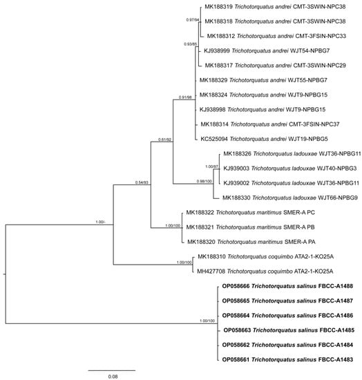 3.3. Characterization of the 16S–23S ITS Region of Trichotorquatus salinus