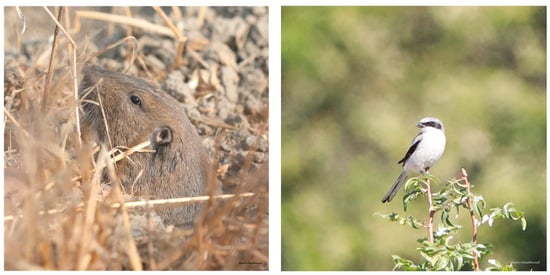 Terrestrial vertebrate species declined the most in our study, consistent with previous findings [,,], but the declines we measured were not significant due to insufficient statistical power. Though not statistically significant, we suggest that our measured declines ought to be considered biologically significant. In the field, finding fewer or no terrestrial mammals and amphibians where we had seen them before was noticeable, and we assert that these declines resulted directly from development. Some of these terrestrial vertebrate species were ecological keystone species, such as the Botta’s pocket gopher (Figure 13) and California ground squirrel. The California ground squirrel, in particular, has been found to limit the distribution of multiple special-status species, such as the burrowing owl [] and loggerhead shrike []. Indeed, where development preceded our second surveys, California ground squirrels were not observed, and neither were any of the burrowing owls or loggerhead shrikes that we had seen at those sites prior to development (Figure 13).