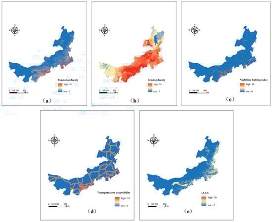4.2.1. Spatial Distribution of Each Human Activity Factor