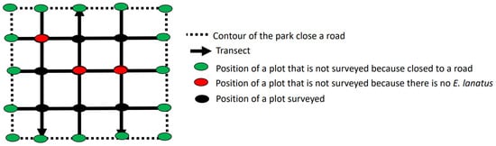 Figure 1. Graphical representation of the design of data collection. The minimum distance between two consecutive plots is 7 m.