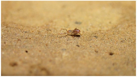 - Deeleman-Reinhold, C.L. Forest spiders of South East Asia: With a revision of the sac and ground spiders (Araneae: Clubionidae, Corinnidae, Liocranidae, Gnaphosidae, Prodidomidae and Trochanterrudae); Brill Academic Publishers: Leiden, The Netherlands, 2001; pp. 1–591. [Google Scholar]