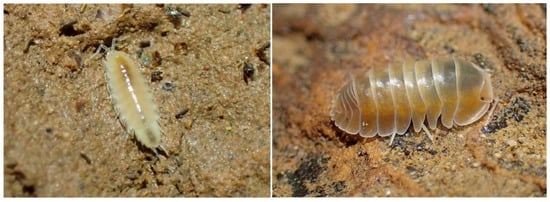 - Taiti, S.; Ferrara, F. Revision of the genus Exalloniscus Stebbing, 1911 (Crustacea: Isopoda: Oniscidea). Zool. J. Linn. Soc. 1988, 94, 339–377. [Google Scholar] [CrossRef]