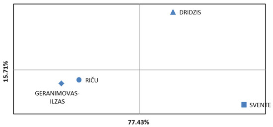 The smallest genetic distance (D) [55] was observed between lakes Riča and Geraņimovas-Ilzas (0.16), while the greatest genetic distance was found between lakes Dridzis and Geraņimovas-Ilzas (0.70) and between lakes Geraņimovas-Ilzas and Svente (1.35) (Table 6).