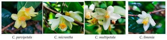 Comparison of floral characteristics of Camellia multipetala, Camellia limonia, Camellia parvipetala, Camellia micrantha.