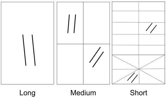 Generalized, representative layouts of pastures in the three grazing systems used in this study in eastern Cherry and northern Thomas counties in Nebraska, USA: long duration, medium duration, and short duration. Fences within grazing units created pastures used for rotation of cattle, and grazing systems varied within each category. Parallel lines represent bird survey transects and show examples of how sampling transects were placed within each grazing system (total transect length at each study site in all systems = 3000 m).