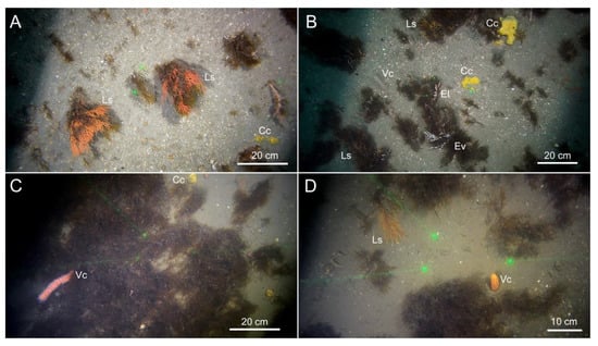 The following supporting information can be downloaded at https://www.mdpi.com/article/10.3390/d15121206/s1, Figure S1: Coverage measurements by ImageJ software; Table S1: Coordinates of the underwater images transects; Table S2: Coordinates of the bottom otter trawl samples.