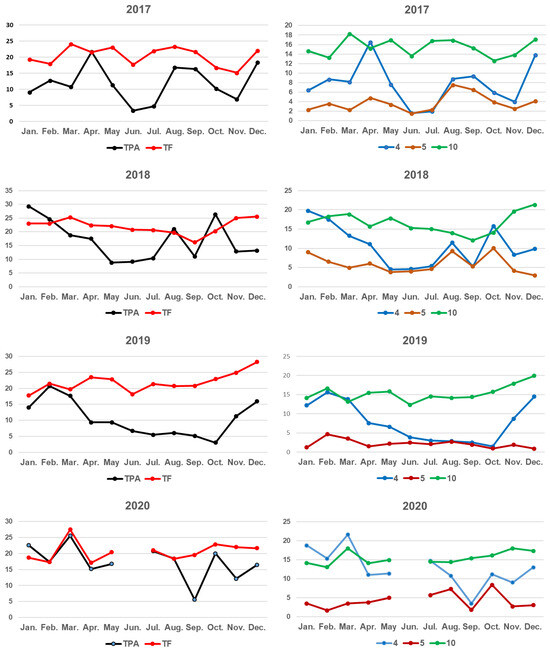 | TPA | 9.20 | 12.79 | 10.82 | 21.72 | 11.38 | 3.46 | 4.80 | 16.83 | 16.38 | 10.27 | 6.95 | 18.51 | 3.46–18.51 | |