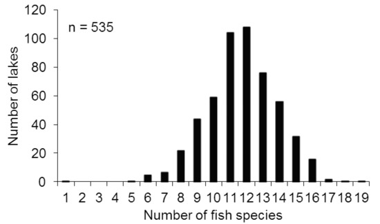 The number of fish species and the assigned number of lakes (in total n = 535 lakes).