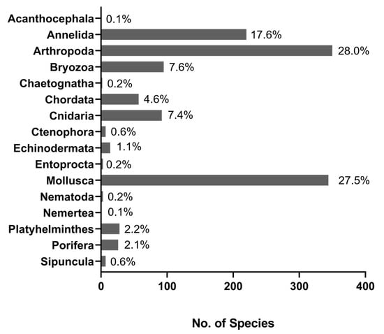 - Ahyong, S.; Boyko, C.B.; Bailly, N.; Bernot, J.; Bieler, R.; Brandão, S.N.; Daly, M.; De Grave, S.; Gofas, S.; Hernandez, F.; et al. World Register of Marine Species (WoRMS). Available online: https://www.marinespecies.org (accessed on 17 September 2021).