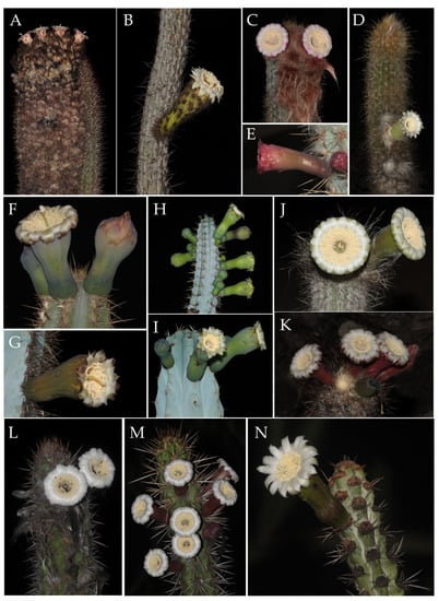 Albuquerque-Lima, S.; Taylor, N.P.; Zappi, D.C.; Machado, I.C. Floral Specialization and Bat Pollination in Subtribe Cereinae (Cactaceae): A Morphological Approach. Diversity 2023, 15, 207. https://doi.org/10.3390/d15020207