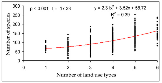 Dependence of plant species richness in grid cellson diversity of land use types.