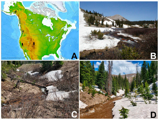 | 2 | CO, Jackson County, near Cameron Pass, snowmelt trib. Michigan River (0.5–1.0 m) | 40°30′31″ N 105°53′05″ W | 3089 | 11 June 2022 | 6 larvae (6 chromosome preparations) |