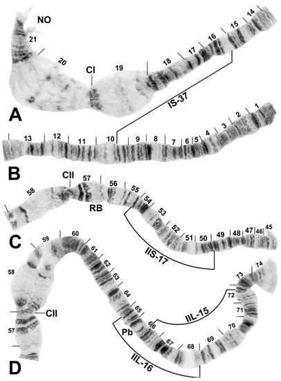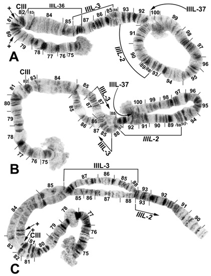 - Basrur, P.K. The salivary gland chromosomes of seven segregates of Prosimulium (Diptera: Simuliidae) with a transformed centromere. Can. J. Zool. 1959, 37, 527–570. [Google Scholar] [CrossRef]