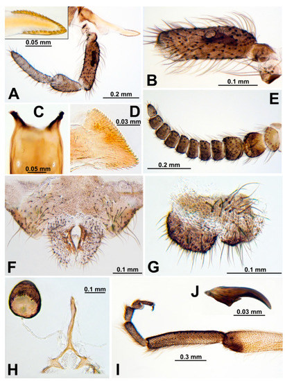 - Sommerman, K.M. Prosimulium esselbaughi n. sp., the Alaskan P. hirtipes 2 (Diptera: Simuliidae). Proc. Entomol. Soc. Wash. 1964, 66, 141–145. [Google Scholar]
