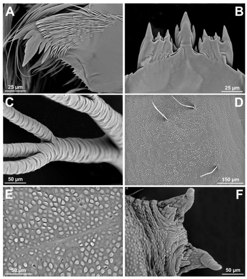 - Chance, M.M. The functional morphology of the mouthparts of blackfly larvae (Diptera: Simuliidae). Quaest. Entomol. 1970, 6, 254–284. [Google Scholar]