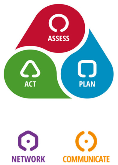 We reviewed the two action plans (1995 and 2010) and their preparation processes to categorize their implemented activities into the five components of the SCC: (1) Assess, (2) Plan, (3) Act, (4) Network, or (5) Communicate (Figure 2).