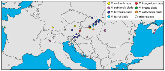Four samples, (N. forroi, Gejzír Spring 1 (Zemplén Mts), Kánya Spring (Mátra Mts), and Werbőczy Spring (Mátra Mts)) form a well-defined and separate clade together with a taxon from Southeast Slovakia (N. loc. Brdo). Genetic distinctness of the three Hungarian populations indicate that each of them represents most likely a new putative species.