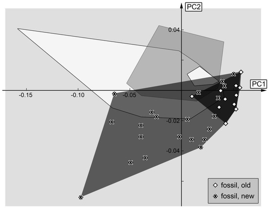 Same morphospace as in Figure 29, highlighting the new occupation of morphospace of the fossils.