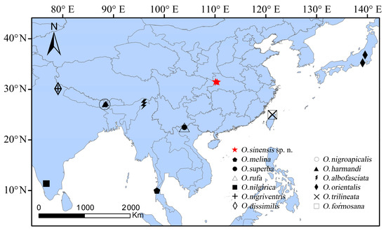 In contrast with the European species [3,4,17], these species are quite poorly known. According to their original descriptions [5,7,8,9,10,11,13,14,15], the new species, O. sinensis sp. n., could be easily differentiated from the above species by the following key.