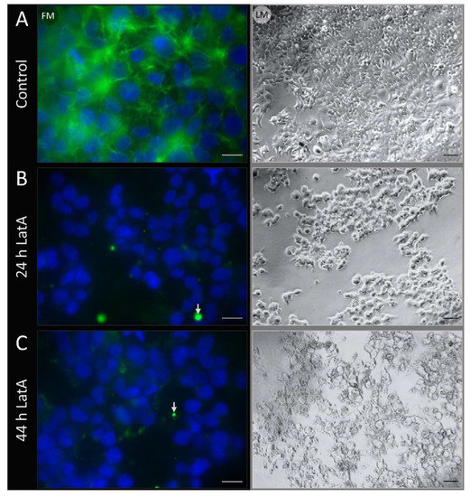 - Morton, W.M.; Ayscough, K.R.; McLaughlin, P.J. Latrunculin Alters the Actin-Monomer Subunit Interface to Prevent Polymerization. Nat. Cell Biol. 2000, 2, 376–378. [Google Scholar] [CrossRef]