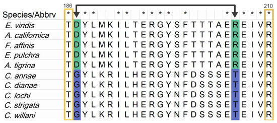| (1) | C. annae | C. dianae | C. strigata | C. lochi | C. willani | F. affinis | A. tigrina | E. pulchra | A. californica | E. viridis |