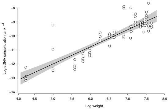 - Yates, M.C.; Glaser, D.M.; Post, J.R.; Cristescu, M.E.; Fraser, D.J.; Derry, A.M. The relationship between eDNA particle concentration and organism abundance in nature is strengthened by allometric scaling. Mol. Ecol. 2021, 30, 3068–3082. [Google Scholar] [CrossRef]