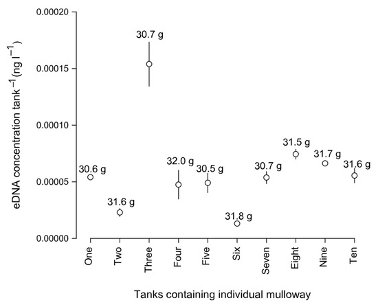 - Lacoursière-Roussel, A.; Rosabal, M.; Bernatchez, L. Estimating fish abundance and biomass from eDNA concentrations: Variability among capture methods and environmental conditions. Mol. Ecol. Resour. 2016, 16, 1401–1414. [Google Scholar] [CrossRef]