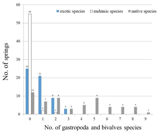 Chiu, Y.-W.; Huang, D.-J.; Shieh, B.-S.; Gan, Y.-C.; Chen, Y.-C.; Jen, C.-H.; Lee, L.-L.; Liang, S.-H. Current Status and Conservation of Springs in Taiwan: Water Quality Assessment and Species Diversity of Aquatic Animals. Diversity 2023, 15, 332. https://doi.org/10.3390/d15030332