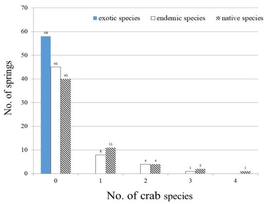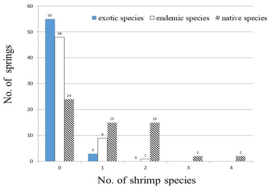 APA StyleChiu, Y.-W., Huang, D.-J., Shieh, B.-S., Gan, Y.-C., Chen, Y.-C., Jen, C.-H., Lee, L.-L., & Liang, S.-H. (2023). Current Status and Conservation of Springs in Taiwan: Water Quality Assessment and Species Diversity of Aquatic Animals. Diversity, 15(3), 332. https://doi.org/10.3390/d15030332
