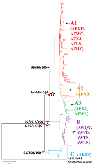 APA StyleZhou, M.-Y., Wang, J.-J., Ren, J.-F., Li, F., Wu, J.-X., Zhou, J.-J., Li, J.-L., Yang, J.-Q., & Lin, H.-D. (2023). Historical Landscape Evolution Shaped the Phylogeography and Population History of the Cyprinid Fishes of Acrossocheilus (Cypriniformes: Cyprinidae) According to Mitochondrial DNA in Zhejiang Province, China. Diversity, 15(3), 425. https://doi.org/10.3390/d15030425