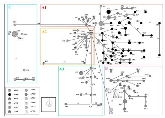 3.1. Genetic Diversity of A. fasciatus, A. wenchowensis and A. kreyenbergii