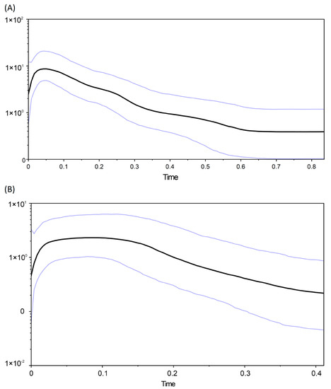 - Rambaut, A.; Suchard, M.A.; Xie, D.; Drummond, A.J. Tracer v1.6. Available online: http://beast.bio.ed.ac.uk/Tracer (accessed on 26 March 2021).