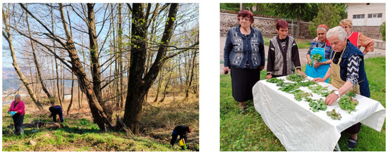 Contrary to the great awareness of the health benefits of (wild) greens as part of the MD in other countries [30,99], the traditional collection of wild greens in Bulgaria seems to be limited and sometimes ignored even by rural communities. Hence, Bulgarian tradition for the collection and preparation of wild spring vegetables is in a dire situation, and most of the taxa are known only locally in the villages near the southern border both in the eastern and western part of the country. They have not reached broader audiences in Bulgaria, as seniors rarely manage to promulgate them even in their own communities, especially to younger generations [79] (Figure 3).