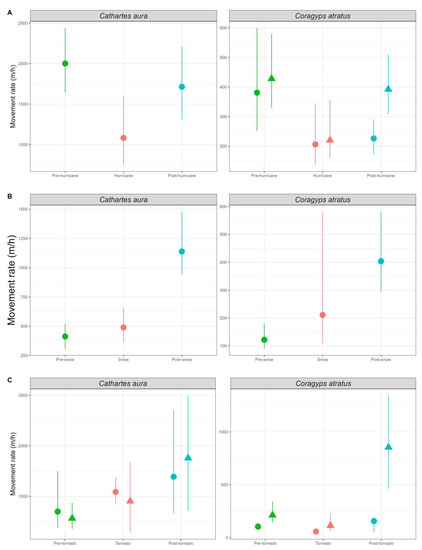 | Cathartes aura | 7 | Yes | Pre-hurricane | 2002 (1643–2438) | 2206 (1111–4432) |