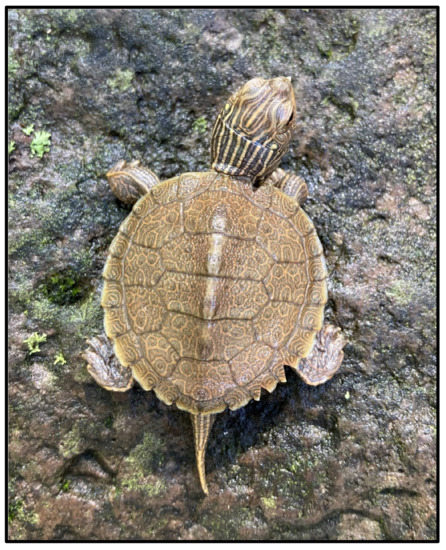 - Lindeman, P.V. The Map Turtle and Sawback Atlas: Ecology, Evolution, Distribution, and Conservation; University of Oklahoma Press: Norman, OK, USA, 2013; pp. 1–460. [Google Scholar]