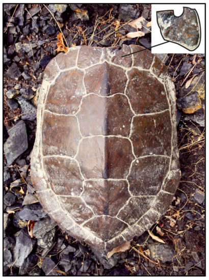 - Nagle, R.D.; Rowe, C.L.; Grant, C.J.; Sebastian, E.R.; Martin, B.E. Abnormal shell shapes in Northern Map Turtles of the Juniata River, Pennsylvania, USA. J. Herpetol. 2018, 52, 59–66. [Google Scholar] [CrossRef] [PubMed]