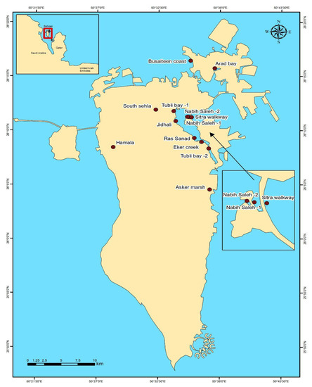 - Naser, H.A. Community Structures of Benthic Macrofauna in Reclaimed and Natural Intertidal Areas in Bahrain, Arabian Gulf. J. Mar. Sci. Eng. 2022, 10, 945. [Google Scholar] [CrossRef]