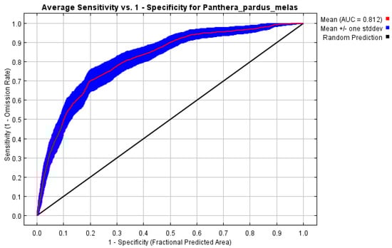 The Javan leopard habitat suitability model on Java Island had an AUC value of 0.812 with a standard deviation value of 0.026. The model performance is good if the standard deviation value is smaller [29]. The AUC value suggests a very good model between 0.90 and 1, good between 0.80 and 0.90, moderate between 0.70 and 0.80, and low below 0.70 [30]. The Javan leopard habitat suitability model for Java Island achieved a good performance. According to [30], an acceptable fit model should have an AUC value of more than 0.50.