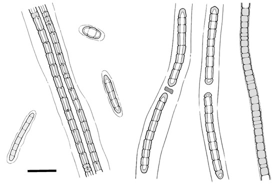 - Komárek, J.; Anagnostidis, K. Cyanoprokaryota II. In Süsswasserflora von Mittleuropa 19/2; Büdel, B., Krienitz, L., Gärtner, G., Schagerl, M., Eds.; Elsevier/Spektrum: München, Germany, 2005; p. 759. [Google Scholar]