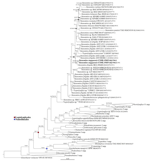 In conclusion, strain CSML-F035 was found to be unique ecologically, phylogenetically, genetically, and in the secondary structures of the 16S–23S ITS region. The evidence substantially supports recognition of Stenomitos nagquensis as new and adds to the knowledge of cyanobacteria in the Tibet region.