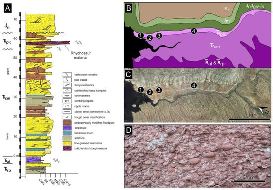 - Desojo, J.B.; Fiorelli, L.E.; Ezcurra, M.D.; Martinelli, A.G.; Ramezani, J.; Da Rosa, Á.A.S.; von Baczko, M.B.; Trotteyn, M.J.; Montefeltro, F.C.; Ezpeleta, M.; et al. The Late Triassic Ischigualasto Formation at Cerro Las Lajas (La Rioja, Argentina): Fossil Tetrapods, High-Resolution Chronostratigraphy, and Faunal Correlations. Sci. Rep. 2020, 10, 12782. [Google Scholar] [CrossRef] [PubMed]