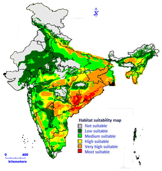 The present work is a novel attempt to provide insights about wild Vigna genetic resources in India with respect to (i) the germplasm collection status of different taxa of wild Vigna; (ii) the prioritization and diversity mapping of wild Vigna based on collected germplasm data; (iii) the identification of diversity-rich hotspots areas using complementarity procedures; and (iv) habitat prediction mapping for wild Vigna.