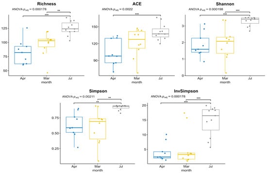 - McMurdie, P.J.; Holmes, S. phyloseq: An R package for reproducible interactive analysis and graphics of microbiome census data. PLoS ONE 2013, 8, e61217. [Google Scholar] [CrossRef] [PubMed]