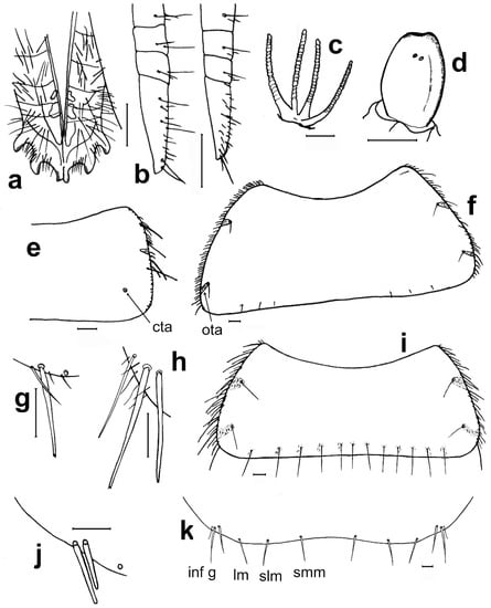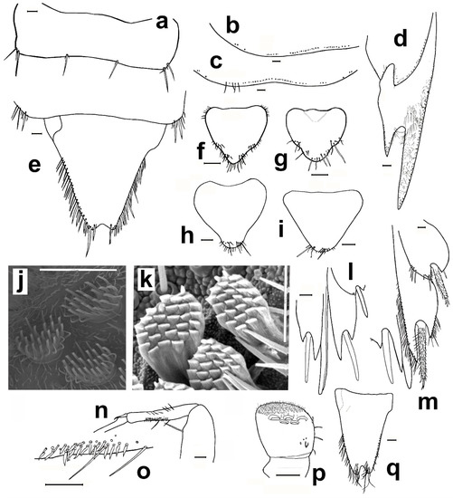 - Molero-Baltanás, R.; Gaju-Ricart, M.; Bach de Roca, C. On the taxonomic use of the distribution pattern of the antennal asteriform sensilla in Neoasterolepisma and Tricholepisma (Insecta, Zygentoma, Lepismatidae). Pedobiologia 2000, 44, 248–256. [Google Scholar] [CrossRef]
